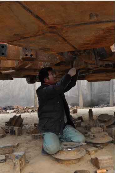 在地下1.4公里的掘進(jìn)路程,讓盾構(gòu)機(jī)從開(kāi)始的煥然一新到現(xiàn)在渾身都是泥土和銹跡,充滿了“奮斗”的痕跡,如同經(jīng)歷了一場(chǎng)大型戰(zhàn)役般,現(xiàn)在的盾構(gòu)機(jī)最需要的是休養(yǎng)和調(diào)整。據(jù)負(fù)責(zé)人李強(qiáng)介紹,盡管配備專門的維修保養(yǎng)人員,但在盾構(gòu)機(jī)掘進(jìn)過(guò)程中,仍會(huì)出現(xiàn)正常的使用損耗,如刀盤的泡沫孔被淤泥堵塞等,只能等到盾構(gòu)機(jī)完全拆卸后才能處理?,F(xiàn)在他們的主要工作就是為盾構(gòu)機(jī)去泥、除渣、除銹、刷油,維修損壞部件,進(jìn)行例行保養(yǎng)。